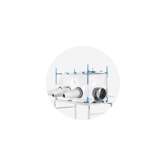 Flexible isolator: It is a working enclosure with flexible and transparent walls, which offers a panoramic view of the working area. Ideal when protection against materials, sensitizers or chemical compounds is required, it provides respiratory and skin protection.
